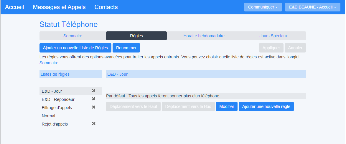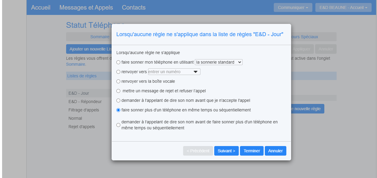Règle qui va faire sonner seulement votre standard téléphonique.