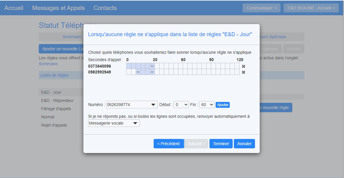 4/ Renseigner le numéro de téléphone ainsi que l’horaire de début et de fin de sonnerie