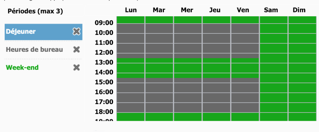 Traiter selon l’heure du jour / Règle dynamique selon l’horaire :