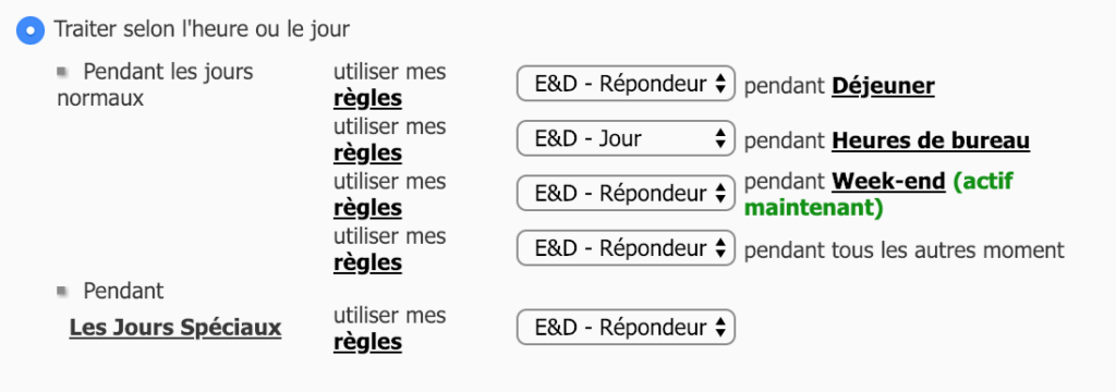 Il s’agit du comportement par défaut de votre sytème de téléphonie. Celui-ci est identique pour l’ensemble des agences, à savoir :